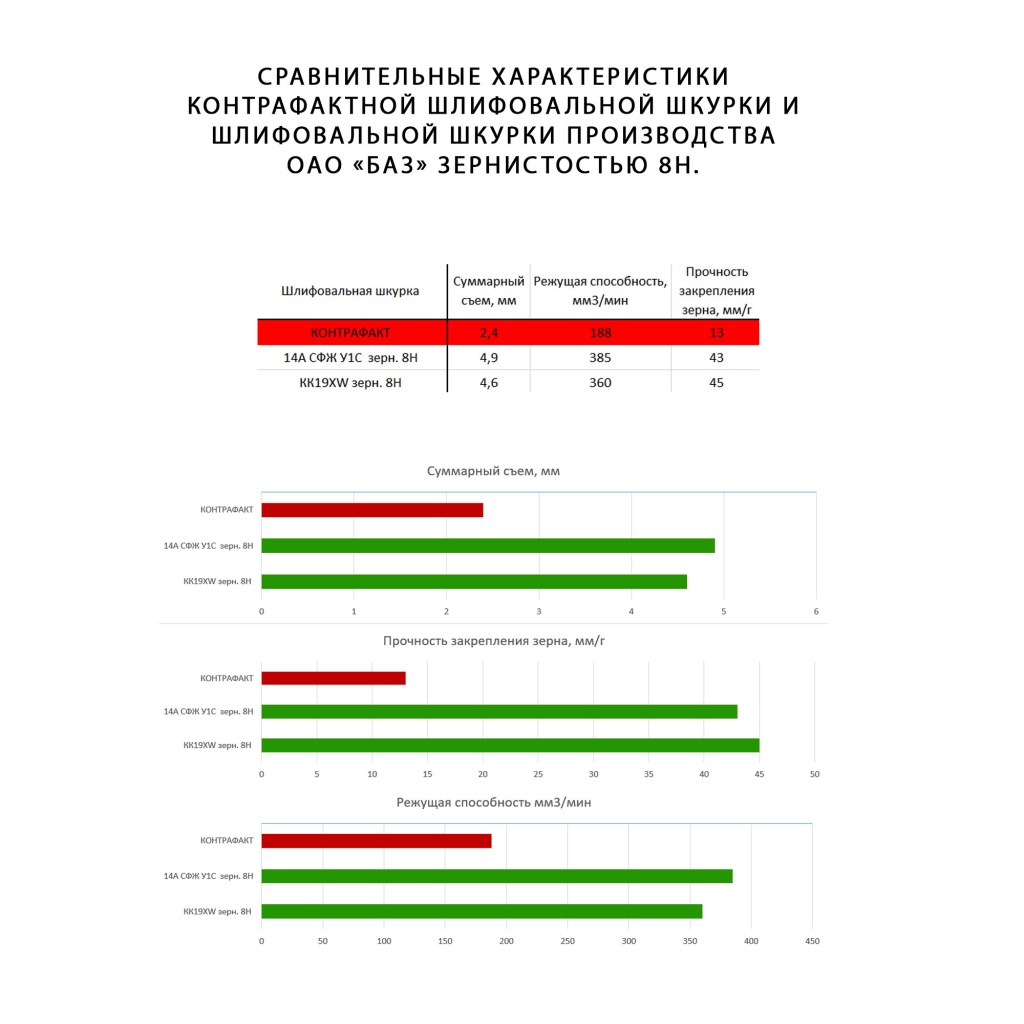 Обычно контрафактная продукция продается совместно с оригинальной и по цене ниже за погонный метр (площадь погонного метра шлифовальной шкурки контрафакта меньше оригинала), что дополнительно вводит потребителей в заблуждение. 2) Цвет шлифовальной шкурки. Контрафактная продукция выпускается на основе темнее оригинала.