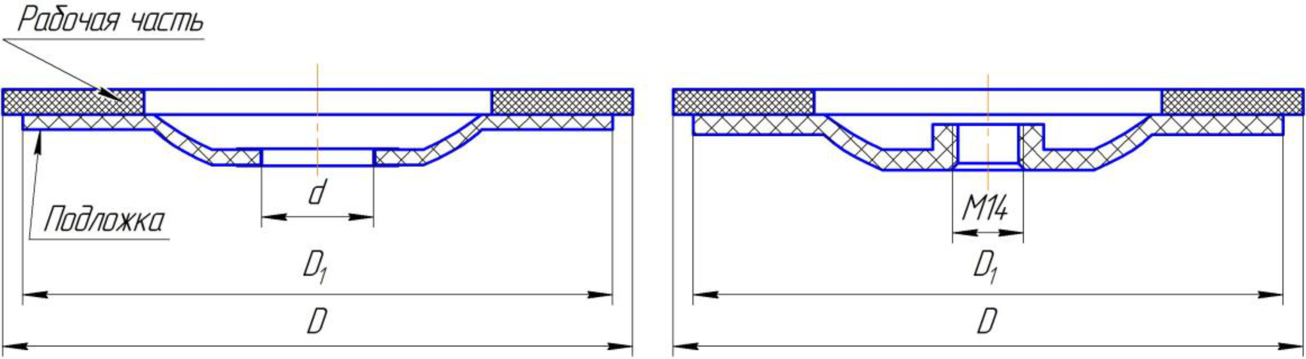 М14 — внутренняя резьбовая метрическая посадка круга 14мм;