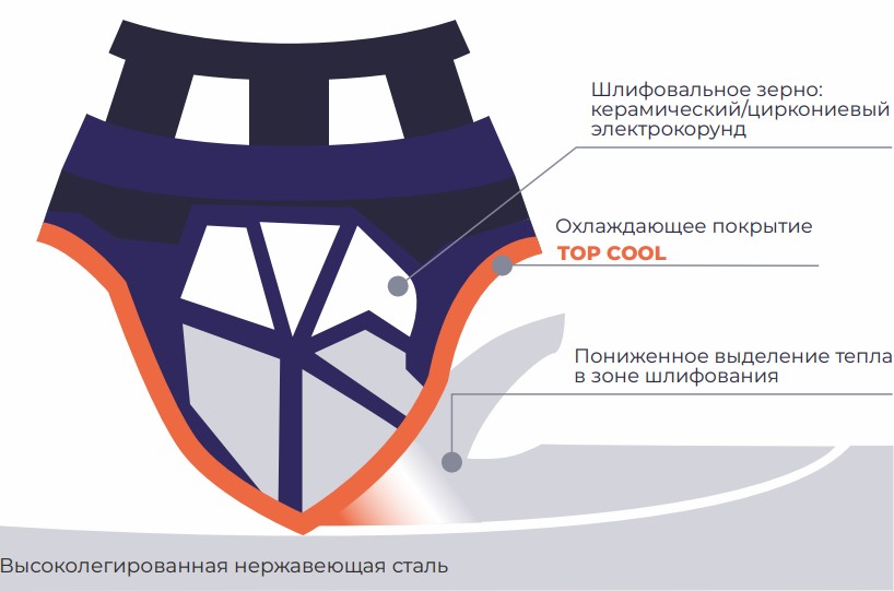 Серия TOP COOL разработана специально для того, чтобы сделать процесс шлифования максимально безопасным и эффективным. Благодаря инновационному охлаждающему покрытию изделия предотвращают перегрев металла, тем самым исключая риск образования прижогов и повреждения поверхности. Это значит, что при работе вы сохраняете качество и внешний вид детали на высоком уровне.